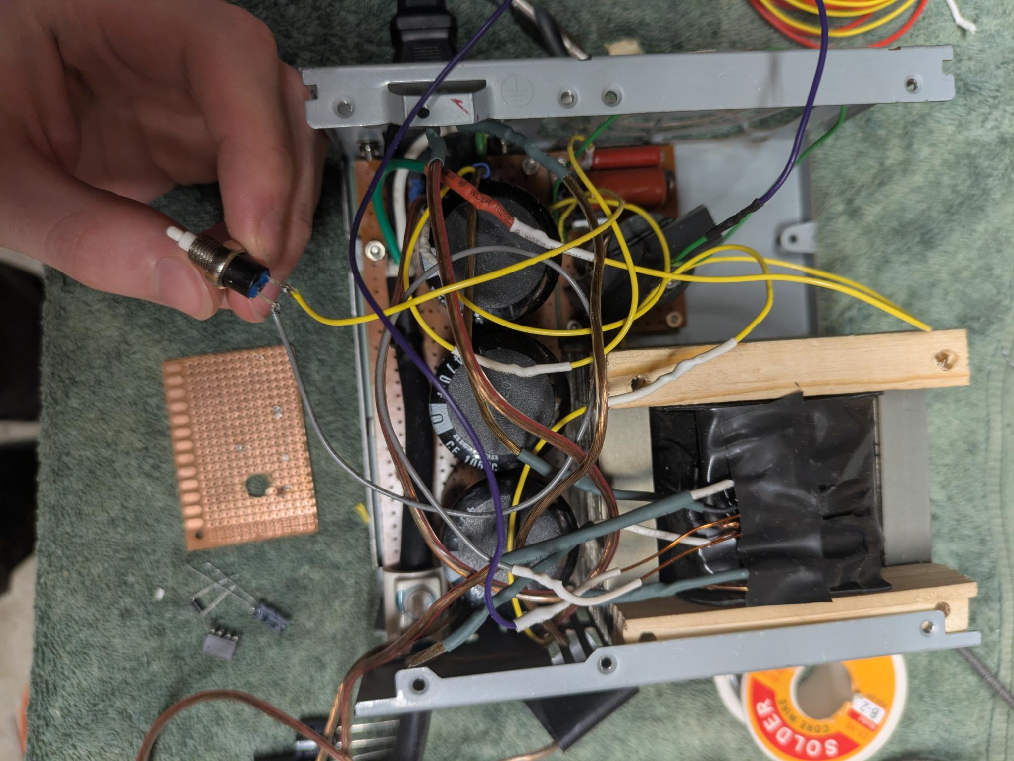Before designing the final circuit I decided to experiment with the flash lamp from the camera flash to test the premise of the design. A single stage voltage multiplier circuit was used to charge the capacitor (taken from the original flash circuit) with mains power (120V AC). For the trigger circuit I reused a high voltage power supply that I bought online in the past for a sodium vapour lamp ballast. While it was rather unreliable (likely due to the trigger circuit not supplying high enough voltage) this set-up was able to flash the lamp, meaning that I was ready to move on to designing the circuit for a larger lamp.